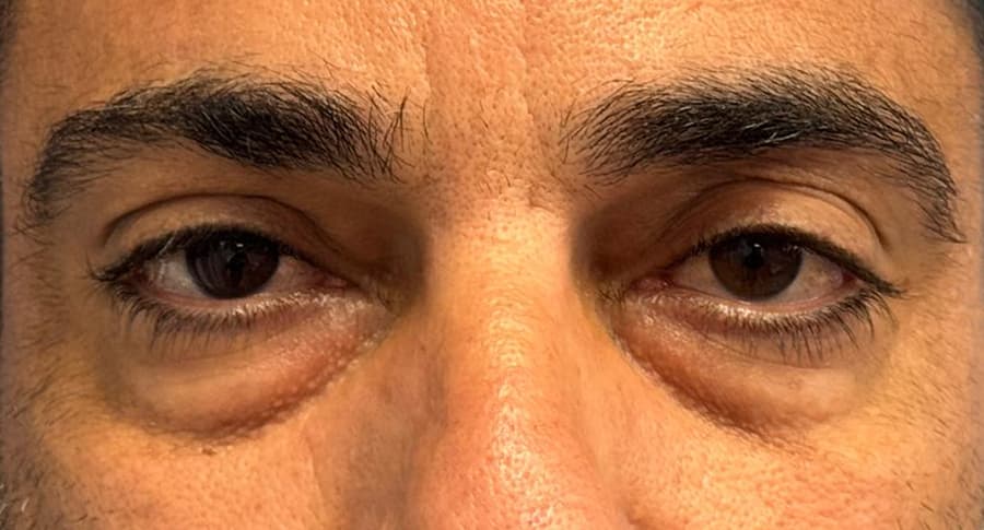 ניתוח עפעפיים עם הזרקה של חומרי מילוי משווה מראה חלק לעפעפיים התחתונים, ומטשטש את המעבר בין העפעף התחתון ללחי.